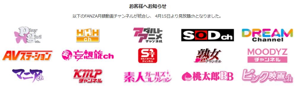 現在は上記15チャンネルには個別に会員登録することはできません。見放題chに統合したため、見放題chに会員登録することで、上記チャンネルのアダルト動画が全て見放題となります。